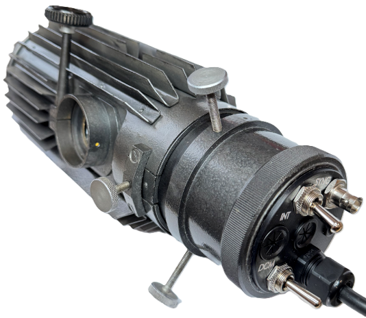 The DRI-SSL module is an LED light source used in schlieren and shadowgraph applications. The module can operate in two modes: continuous or pulsed up to 200 kHz. The LED power and wavelength are user-defined. The standard LED power is 150 W and the wavelength is 460 nm.