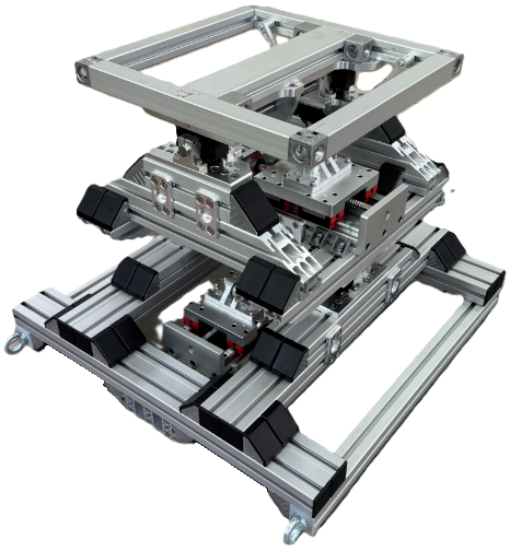 This 2 DOF stabilization system is used to test the imaging effectiveness of opto-electronic systems and UAV landing maneuvers by simulating interference in various operating environments such as sea, land or air. It also can be used to ensure continuous antenna alignment with low orbit satellites by actively compensating for pitch and roll motion supporting a payload of 100 kg.